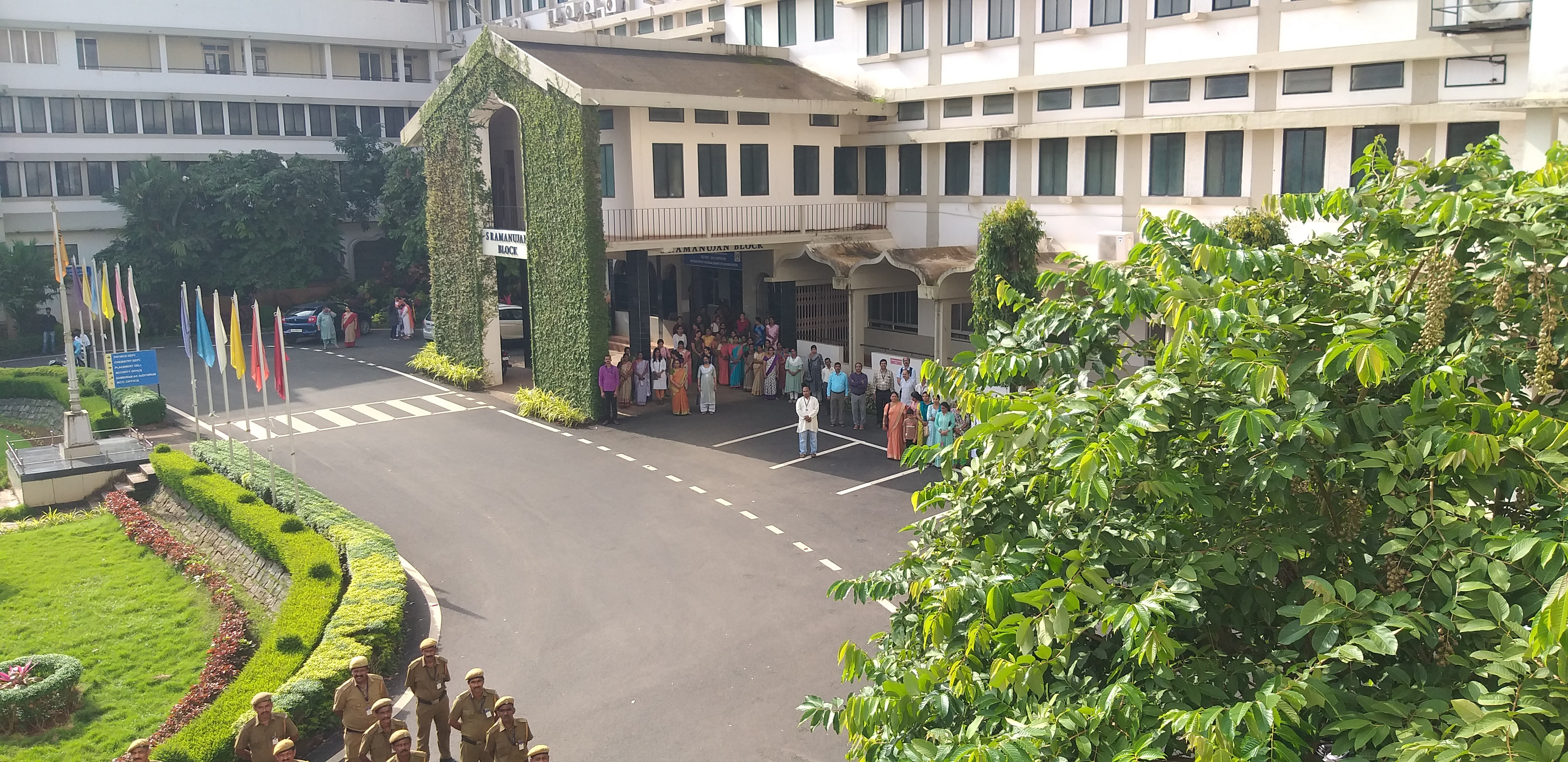 Nitte (Deemed to be University) demonstrates a strong commitment to sustainability through a comprehensive Green Campus framework implemented across its ~150+ acre multi-campus environment. The university has established robust water management systems, including rainwater harvesting capacities exceeding 450,000 litres per heavy rainfall event and sewage treatment infrastructure with a combined capacity of over 1.45 million litres per day, enabling 100% wastewater treatment and reuse for landscaping and non-potable applications. Campus biodiversity initiatives have resulted in the documentation of 1,600+ plant species, 900+ trees and woody shrubs, and 90+ bird species, supported by native landscaping and a 6,500 sq. ft. Miyawaki forest. With approximately 24% green cover, drought-tolerant planting, GIS-based tree audits, and structured sustainability awareness programmes, the university integrates environmental responsibility into infrastructure, operations, and community engagement, aligning campus development with long-term ecological resilience and sustainability goals.